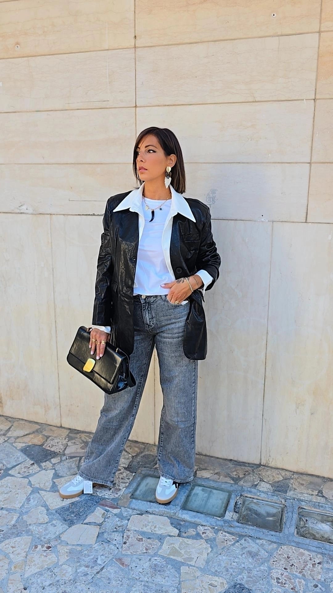 Giacca in ecopelle con finta camicia sotto,