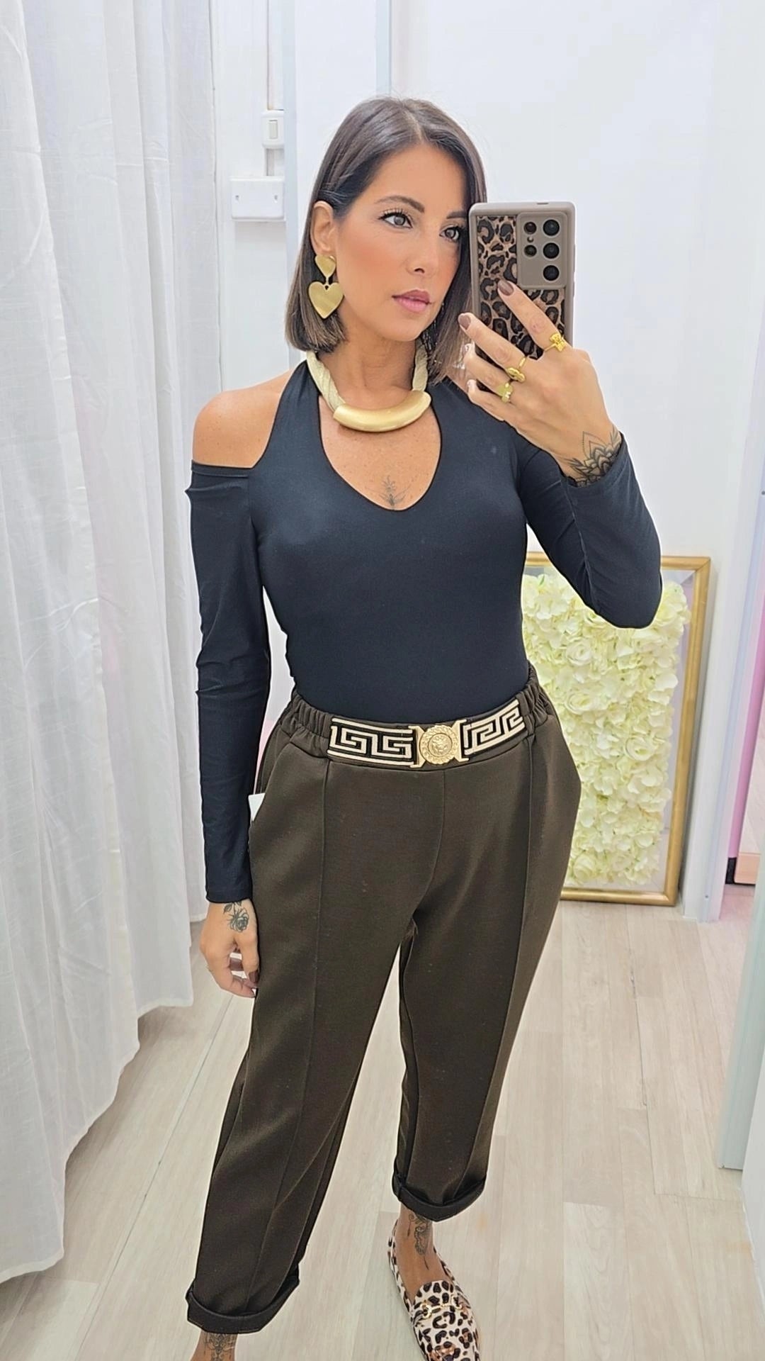 Body con particolare scollo all'americana e spalle scoperte