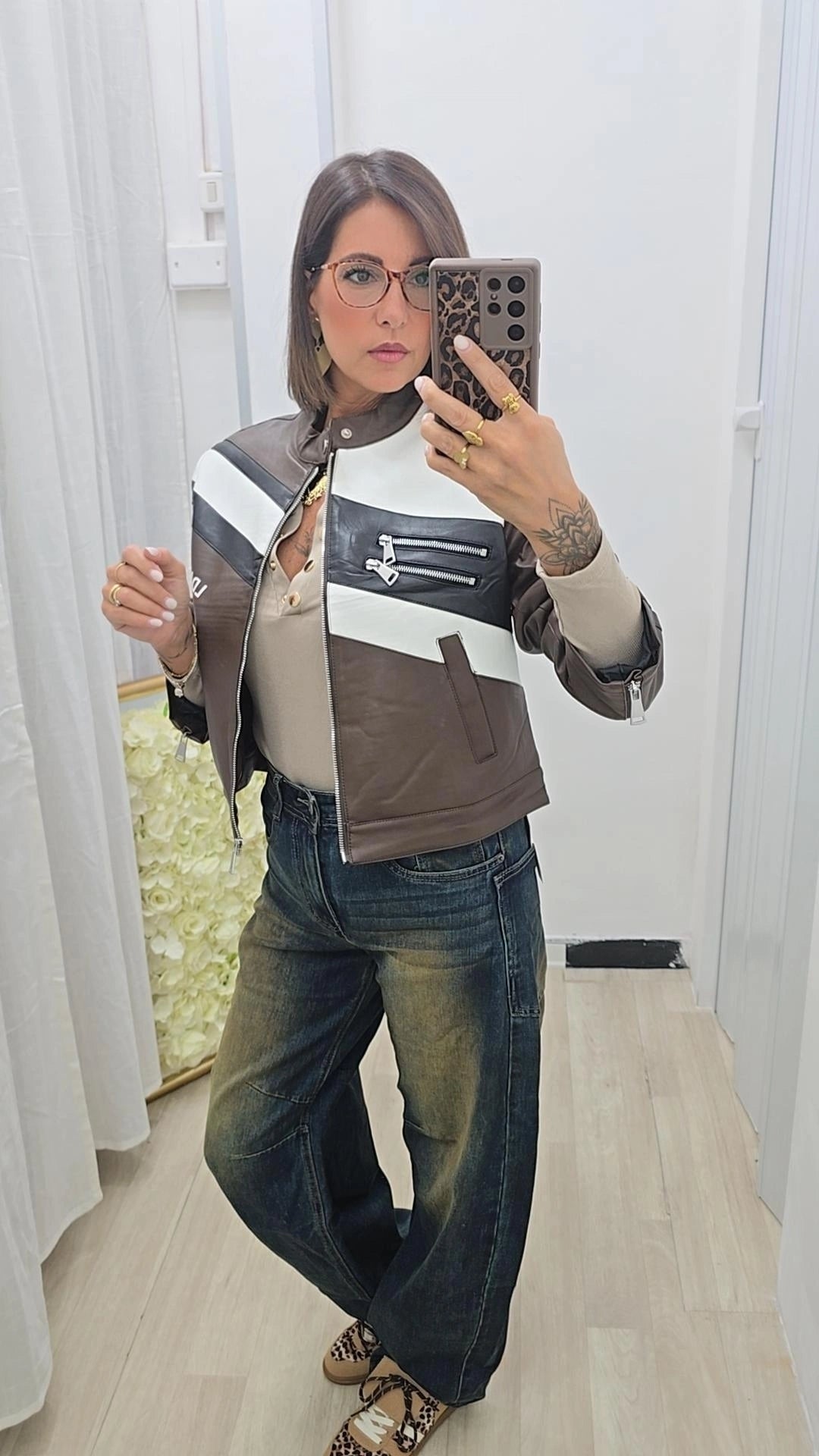 Giubbotto modello Chiodo in ecopelle  Chiusino lampo Collo con bottone a pressione  Foderato  Taglia unica consigliato fino...