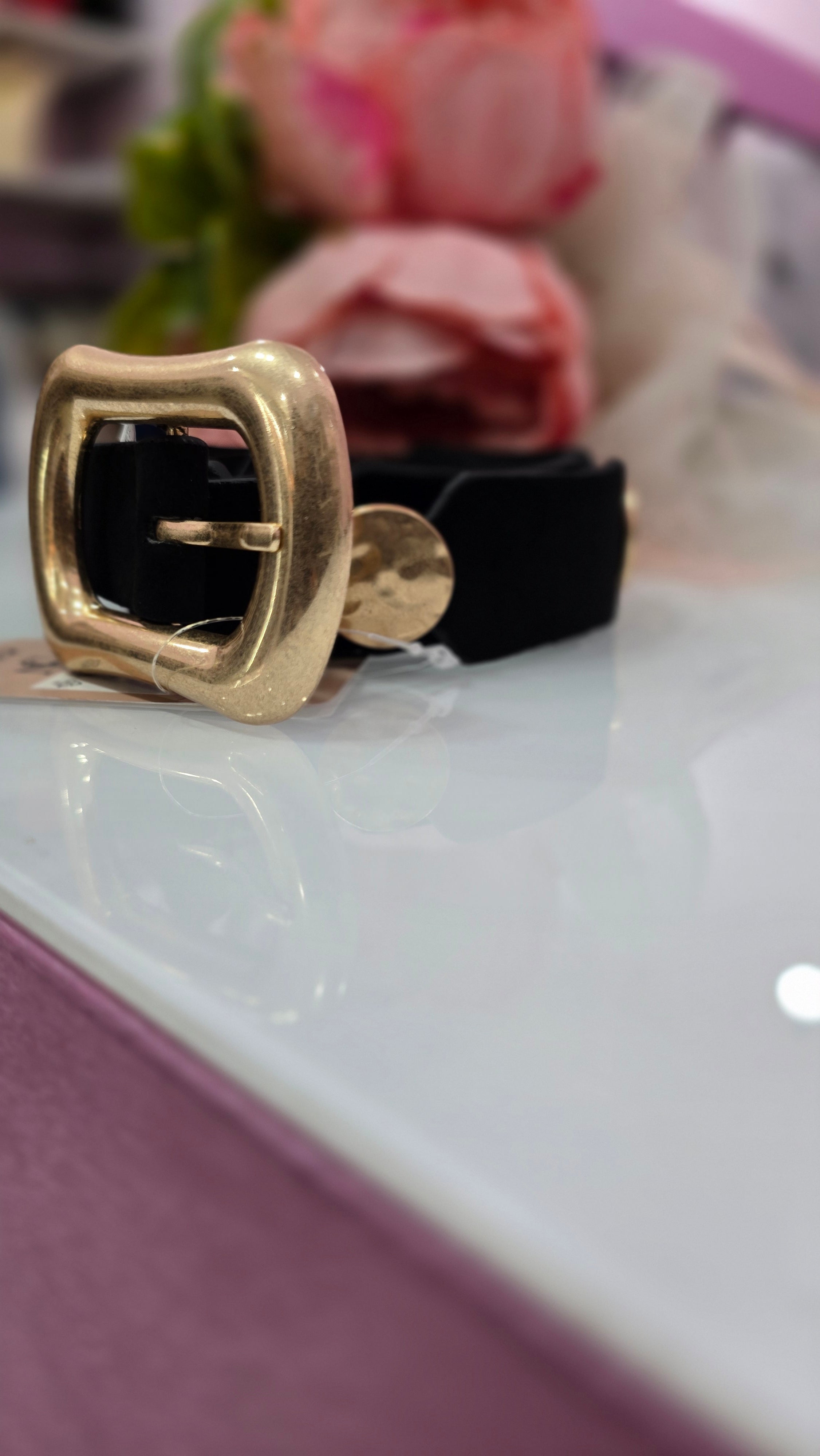Cintura in eco camoscio ,fibbia oro dettaglio di borchie oro su tutta la lunghezza