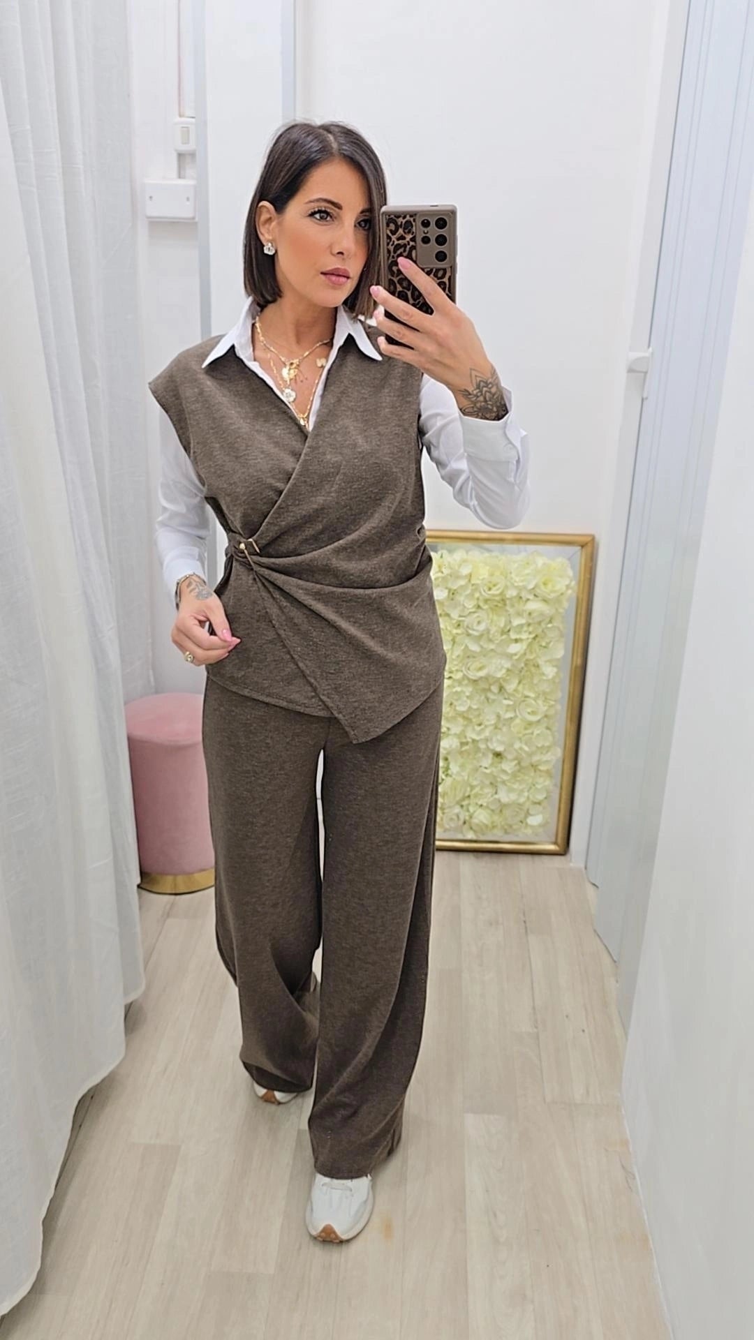 Coordinato composto da  casacca ad incrocio sul davanti con fibbia oro  scollo a V  giro manica  pantalone...