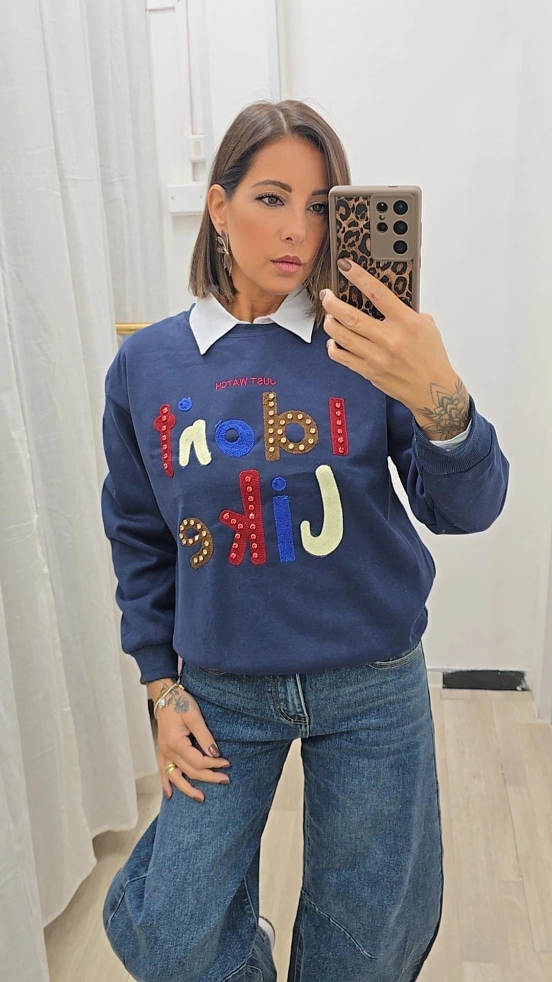 Felpa con scritta ricamata sul davanti  Felpato all'interno  Vestibilità regolare  In foto indossata la taglia S/M
