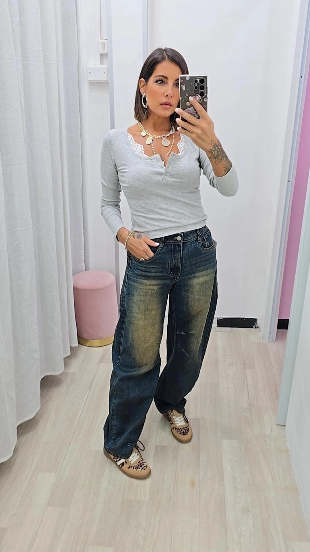 Jeans modello ballon effetto sabbiato  tessuto elastico  in foto indossata la taglia S