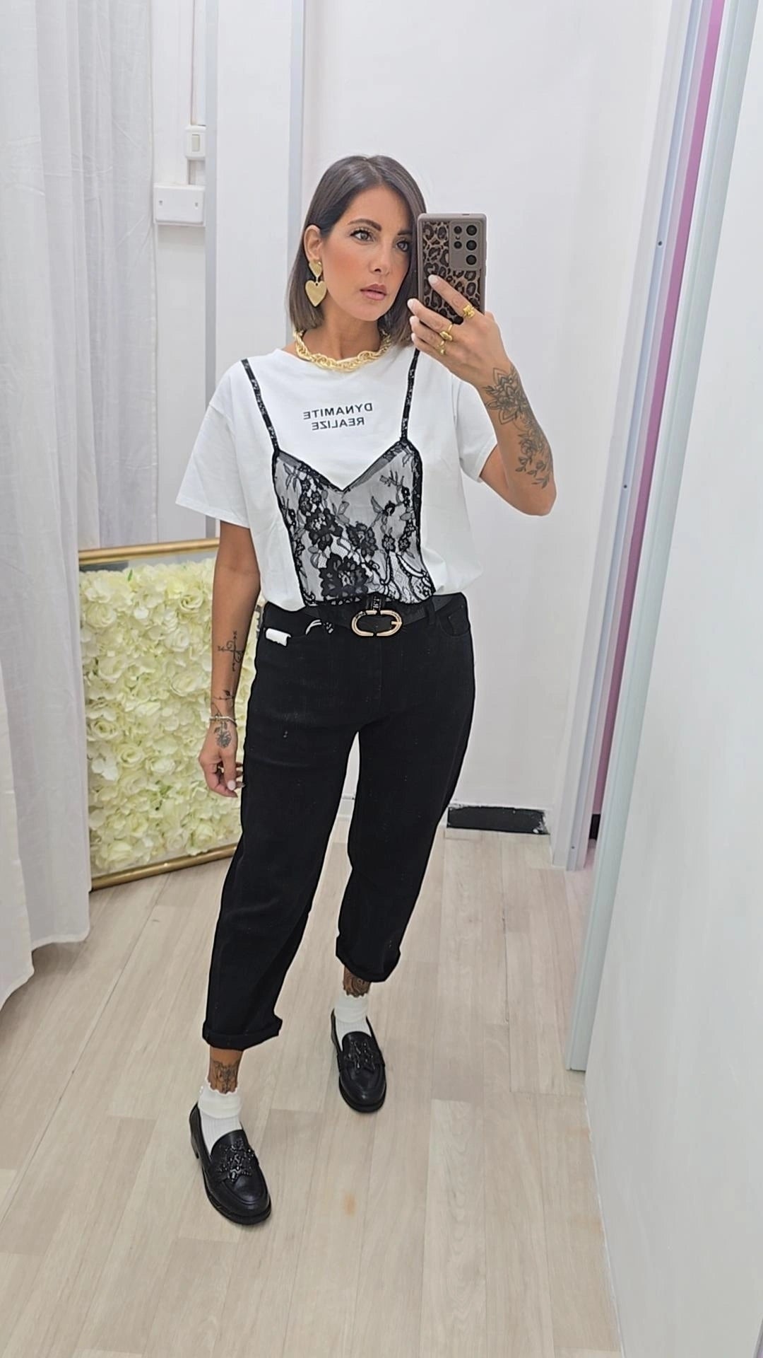 Jeans modello Ballon  Tessuto elastico  In foto indossata la taglia XS