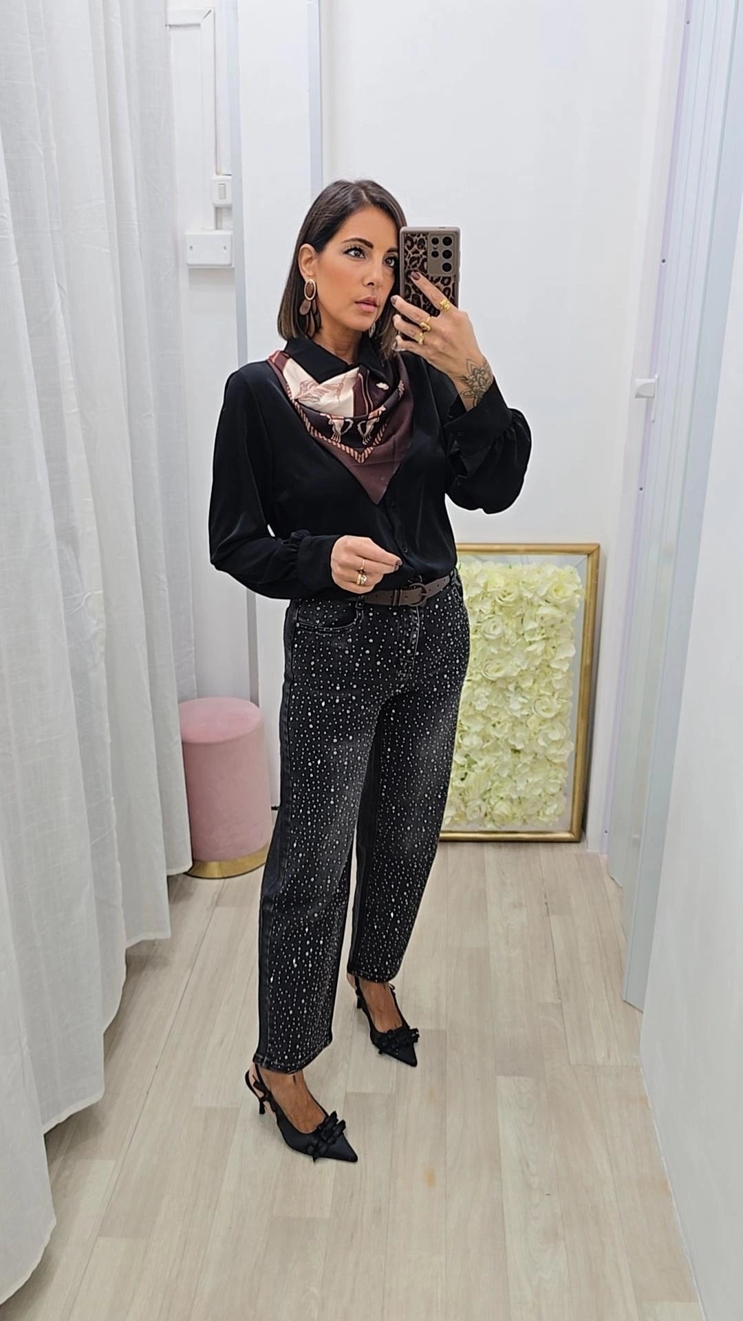 Jeans base grigia con brillantini sul davanti