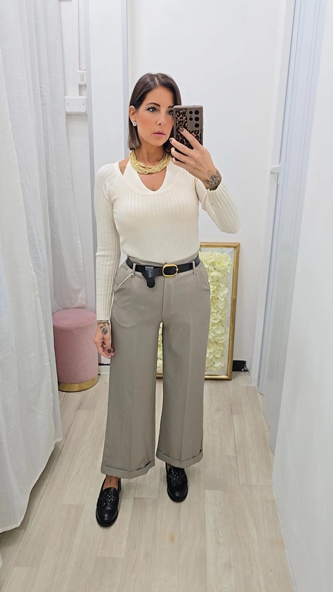 Cintura in vita compresa, chiusura lampo e bottoni sul davanti