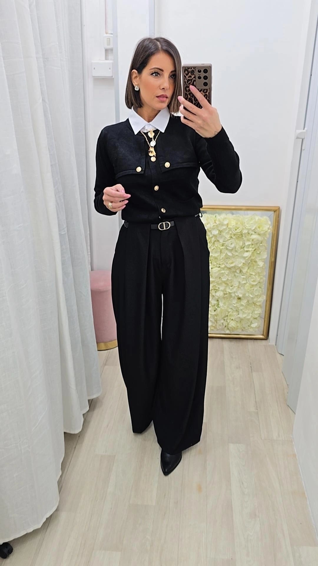 Pantalone palazzo con cintura compresa  particolari pence che fanno da passante per la cintura  elastico sul dietro ...