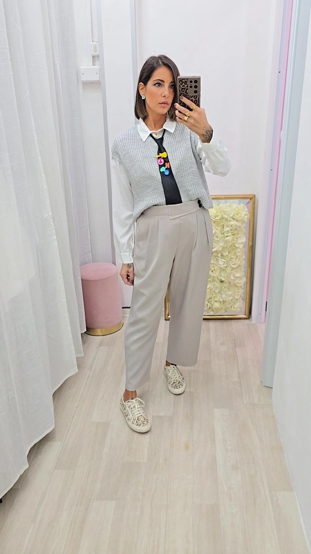 Pantalone con Finto bustino e bottoni  Elastico in tutto il giro vita  Gamba dritta  Tasche laterali  Taglia...