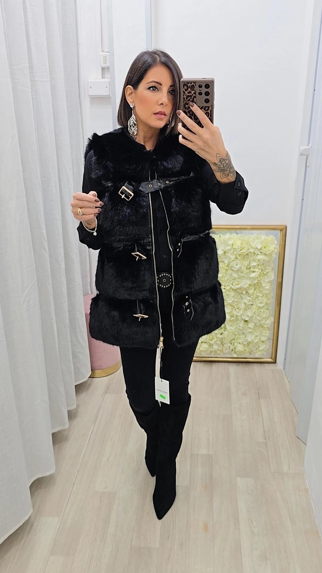 Smanicato in eco pellicci con inserti in eco pelle